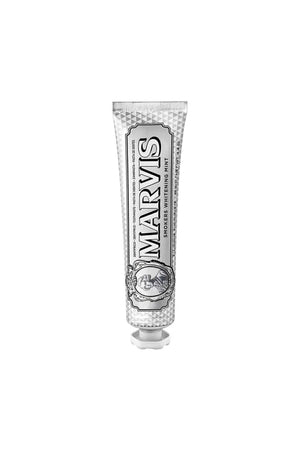 معجون Marvis Smokers Whitening Mint هو الخيار المثالي لكل من يسعى للحصول على أسنان بيضاء لامعة وفم منعش بشكل دائم. اجعل هذه التجربة جزءًا من روتينك اليومي وابدأ يومك بابتسامة أكثر إشراقًا وثقة.