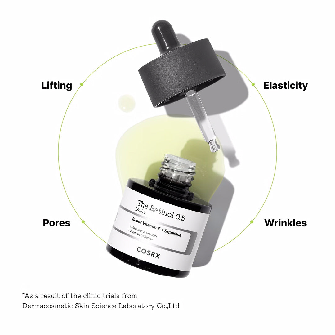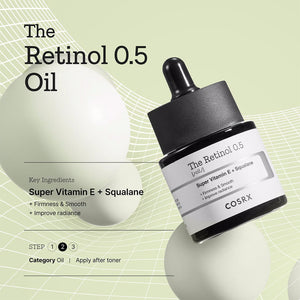 COSRX Retinol Oil 0.5 is a powerful formula that combines the power of pure Retinol 0.5% with powerful Vitamin E and Squalane to deeply hydrate and replenish the skin. This oil improves skin elasticity, reduces the appearance of wrinkles and fine lines, and helps even out skin tone and reduce pigmentation and blemishes. With its rich formula, it provides hydration and smoothness without causing skin irritation, making it suitable for nighttime use for advanced skincare.
