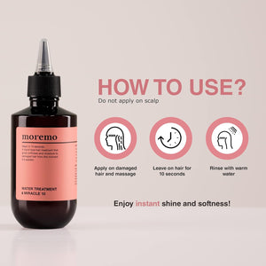 Restore your hair's health and shine with Morimo Miracle 10 Water Hair Treatment , the perfect solution that gives your hair deep hydration and quick repair in just 10 seconds .