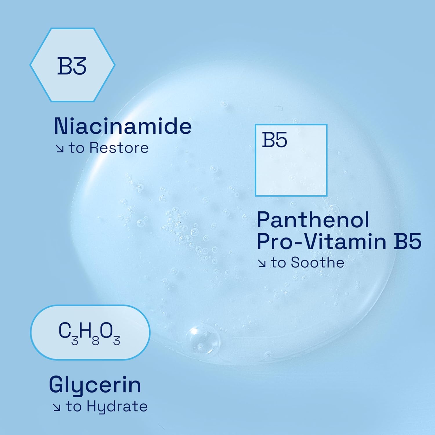 • البانثينول (فيتامين B5): مرطب مغذٍ يساعد على الاحتفاظ بالرطوبة وتقوية حاجز البشرة.