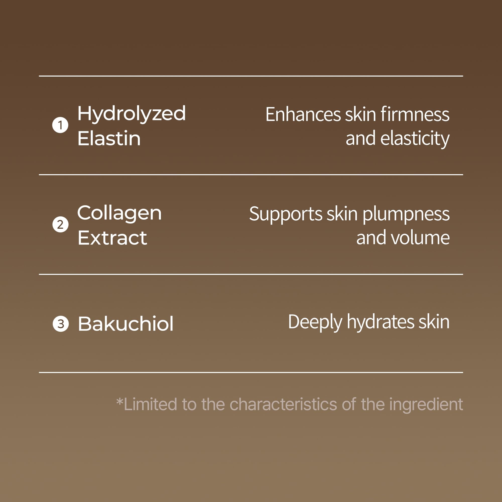 - Supports collagen and elastin production via peptides and bakuchiol.