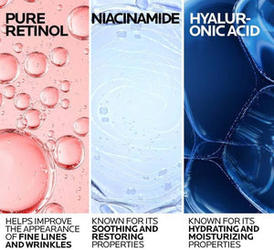 This advanced formula utilizes a gradual retinol release system to help achieve high efficacy while maintaining better tolerance for sensitive skin . Moisturizing ingredients such as hyaluronic acid and glycerin also support the skin's hydration levels, helping to improve its elasticity and smoothness , leaving it looking plumper and more radiant.