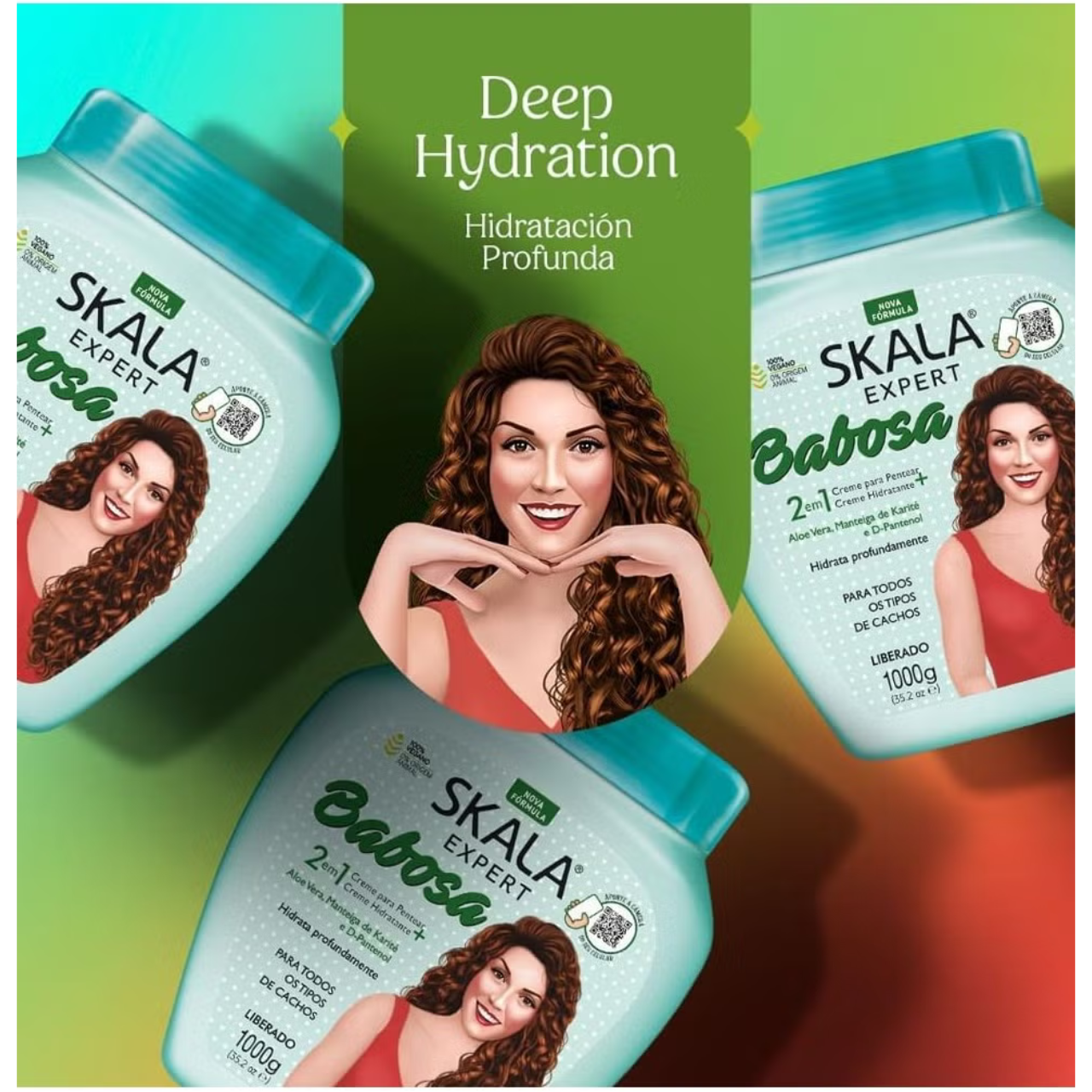 دلّلي شعرك بلمسة من العناية البرازيلية الأصلية مع كريم سكالا بابوسا 2 في 1، الحل المثالي للشعر الجاف والمجعد الذي يحتاج إلى ترطيب مكثّف ولمعان طبيعي. يجمع هذا الكريم بين فوائد الألوفيرا وزبدة الشيا والبانثينول لتغذية الشعر من الأعماق، إصلاح التلف، وإعادة الحيوية إلى الخصلات الباهتة. يتميز بتركيبته النباتية 100% الخالية من السيليكون، البارابين، والزيوت المعدنية، ليمنح شعرك مظهرًا صحيًا وملمسًا ناعمًا دون إثقاله، مع إمكانية استخدامه كعلاج عميق أو كريم تصفيف يومي.