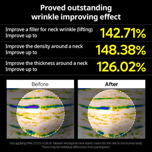 Dr. Melaxin's Nexvalt ECM Ceramide Neck Cream is an advanced cream specifically designed to address neck concerns such as sagging, wrinkles, and loss of elasticity due to aging, also known as "tech neck ." It features an innovative Korean formula enriched with the patented ECM-5 complex at a concentration of 2% (20,000 ppm) , along with a complex of liposome peptides and ceramides . This combination works to strengthen the skin's structure, increase its thickness, and visibly improve the appearance of the neck with regular use.
