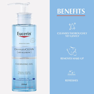 With Eucerin Dermatoclean Hyaluron Cleansing Gel , you can enjoy clean, refreshed, and hydrated skin all day long. Thanks to its gentle formula enriched with hyaluronic acid, the gel is the ideal choice for sensitive skin that needs effective cleansing while maintaining its natural hydration.