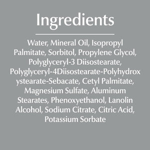 All Ingredients: Water, Mineral Oil, Isopropyl Palmitate, Sorbitol, Propylene Glycol, Diisostearyl Polyglyceryl-3 Dimer Dilinoleate, Polyglyceryl-4 Diisostearate/Polyhydroxystearate/Sebacate, Cetyl Palmitate, Magnesium Sulfate, Aluminum Stearate, Phenoxyethanol, Lanolin Alcohol, Sodium Citrate, Citric Acid, Potassium Sorbate.