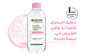 Make cleansing your skin easier and more effective with Garnier Micellar Cleansing Water for Sensitive Skin . It's the perfect solution for gently removing makeup and impurities , while leaving your skin feeling pure and refreshed without irritation. Get it now and enjoy clean, fresh skin all day long !