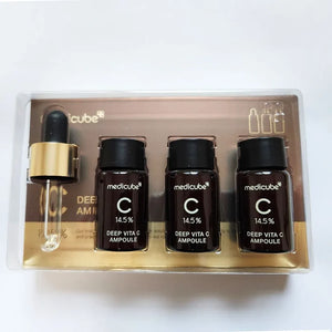 Medicube Deep Vita C Ampoule 14.5% is ergonomically designed to maintain the effectiveness of the product for as long as possible, it comes in a box containing 3 ampoule bottles of 10 ml each with a separate dropper for easy use and to ensure accurate control of the required amount.