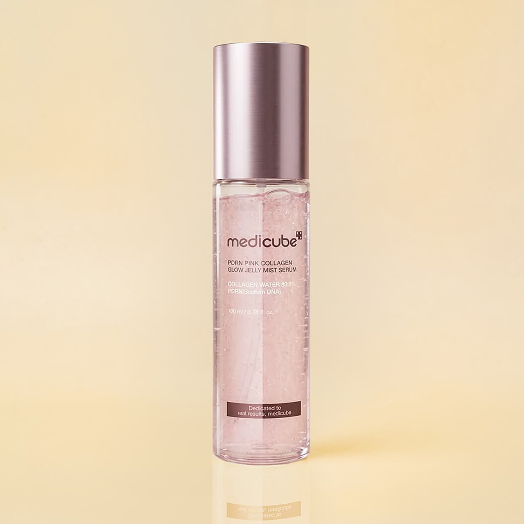 Medicube's PDRN Pink Collagen Jelly Spray Serum is a highly concentrated serum spray with a flexible jelly texture, combining the power of a serum, the density of a mask, and the lightness of a spray in one product. It's designed to give skin instant hydration, visible firming, and a healthy, rosy glow anytime, anywhere, even with constant exposure to sun, air conditioning, and pollution . This smart serum works to repair skin, reduce cell damage, and strengthen the skin barrier all day long, without any greasy or sticky feel , leaving skin plump, smooth, and naturally radiant .