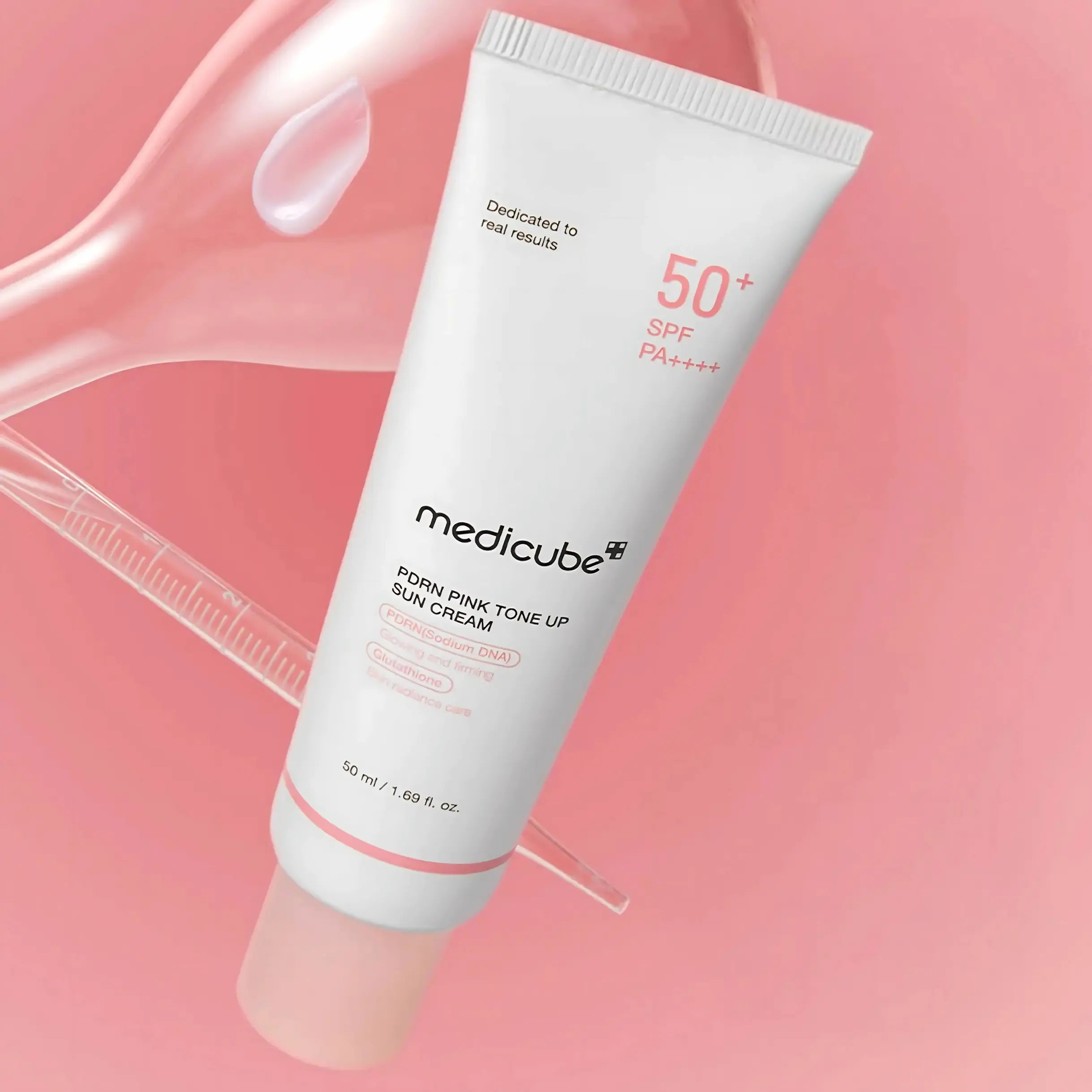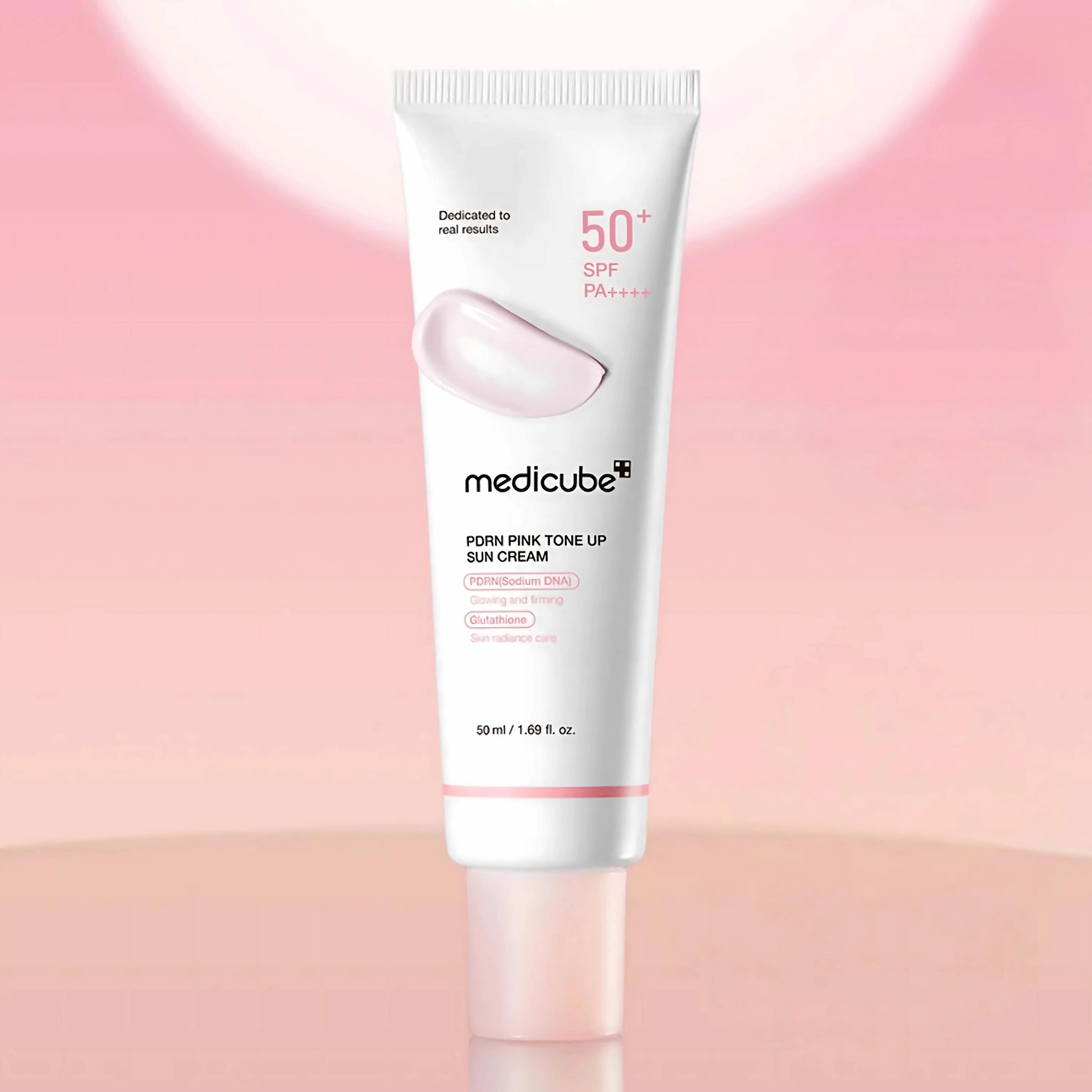 Medicube Tone Up Pink Sunscreen with PDRN Technology is an advanced sunscreen that combines high sun protection with comprehensive skincare in one step. It features a high SPF 50+ and PA++++ rating to provide broad-spectrum protection against UVA and UVB rays, with a pink tone-up effect that gives the skin an immediate radiance and even tone without any white cast or greasy feel. Its advanced formula supports skin's radiance and elasticity thanks to its PDRN, glutathione, niacinamide, and multiple forms of hyaluronic acid .
