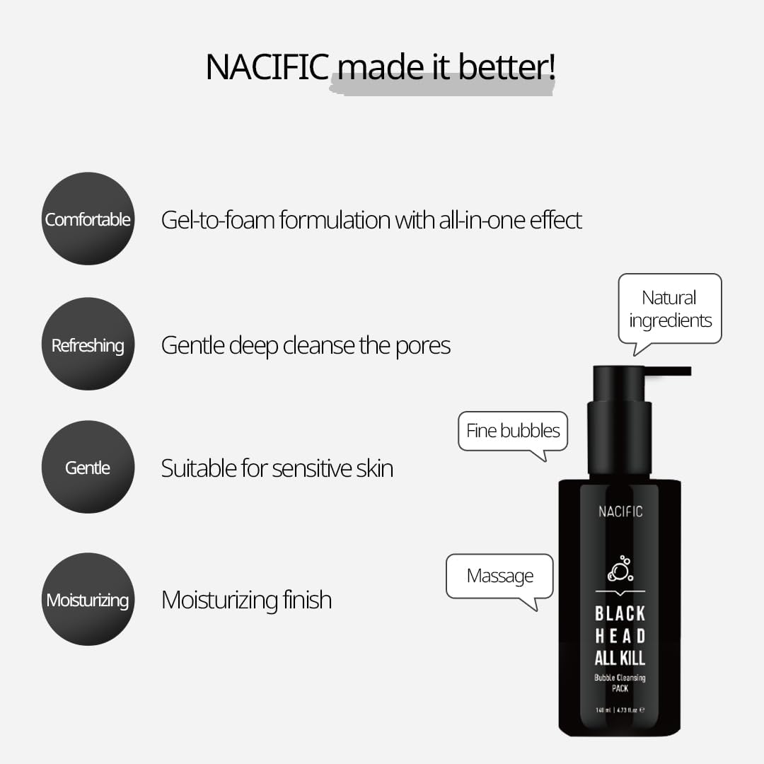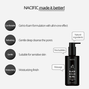 Nasific Blackhead Bubble Cleanser offers a complete solution for deep pore cleansing and the removal of blackheads, impurities, and excess oil. Its innovative formula transforms from a gel to an active bubble foam upon contact with the skin. Working as a 3-in-1 product (oil cleanser, cleansing foam, and treatment mask) , it helps to purify pores, gently exfoliate, and improve skin texture and clarity without irritation, making it an ideal choice for clearer, more balanced skin with every use.