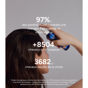 نتائج ملحوظة سريريًا: بعد 6 أسابيع من الاستخدام المنتظم، لوحظ تباطؤ واضح في تساقط الشعر وزيادة في النمو والكثافة.