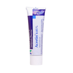 Acretin 0.05% Cream from Jamjoom Pharma is a trusted medical product containing tretinoin , one of the most effective ingredients for treating acne and stimulating cell renewal . This cream gently exfoliates the skin and cleanses pores of impurities, helping to reduce pimples and blackheads and improve overall skin texture. Recommended Beauty Time uses Acretin cream as part of its skincare routine for oily or acne-prone skin. The cream also reduces the formation of blackheads, pimples, and whiteheads . It's also used to improve skin texture, reduce the appearance of enlarged pores, and diminish acne-related blemishes . Thanks to its advanced formula, it's a reliable medical option for those with oily or wrinkle-prone skin .