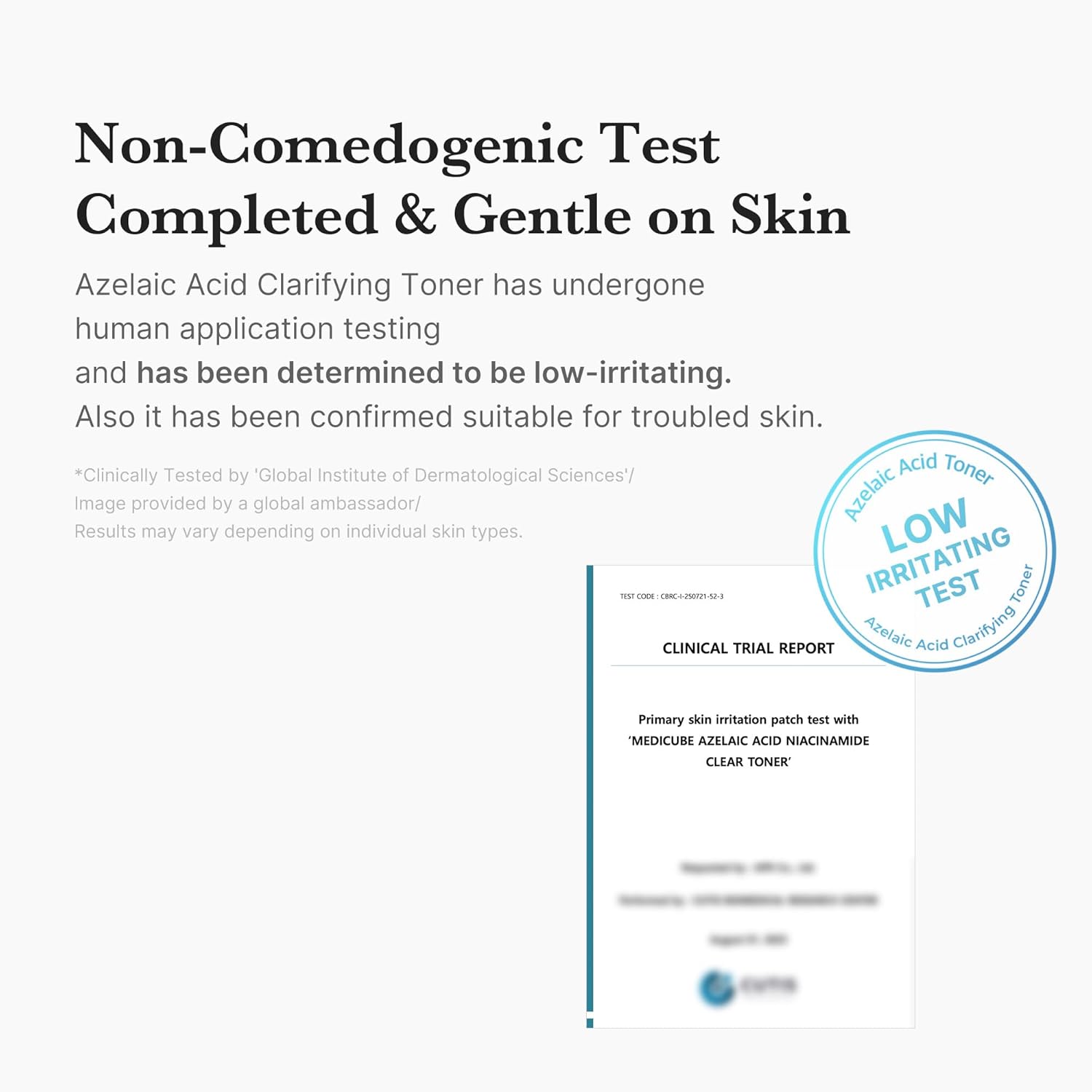 Give your skin a visibly clearer, more refreshed look every day with Medicube Clear Toner with Azelaic Acid 4% and Niacinamide , designed to refine pores, regulate sebum production, and soothe inflammation. This toner combines the power of azelaic acid, known for its antibacterial and anti-inflammatory properties, with niacinamide , which enhances radiance, strengthens the skin barrier, and minimizes the appearance of pores.