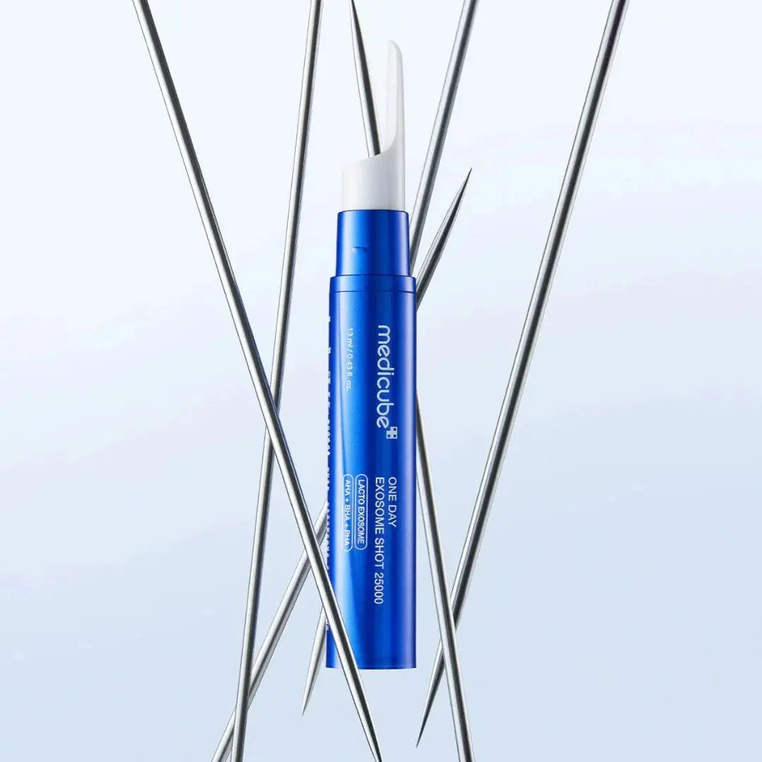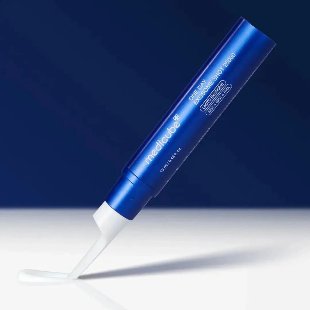 أمبولة إكسوسوم شوت 25000 من ميديكيوب هي علاج عناية مكثّف ومتقدّم موجّه خصيصًا لتحسين مظهر المسام وتجديد البشرة بفعالية عالية. تعتمد على تقنية الإكسوسومات الدقيقة بتركيز 25000 جزء في المليون، والمصمّمة على هيئة جزيئات دقيقة شبيهة بالإبر تساعد على توصيل المكوّنات النشطة إلى طبقات البشرة بعمق. تعمل التركيبة على تنعيم الملمس، تعزيز الإشراقة، ودعم تجديد الخلايا، مع إحساس وخز خفيف ومؤقت يدلّ على نشاط التركيبة وفعاليتها.