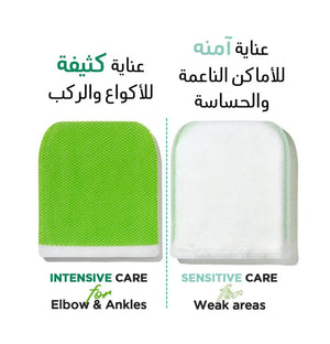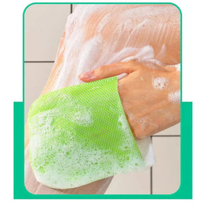 - Run the rough green side over areas that need extra exfoliation, such as knees, elbows, and heels.