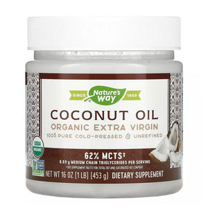 Nature's Way Organic Extra Virgin Coconut Oil is a 100% natural product that is cold pressed from fresh coconuts, preserving all the beneficial nutrients and great taste. This oil is ideal for cooking, as well as for its many uses in skin and hair care. Coconut oil gives you a healthy and delicious experience in your kitchen and natural care for your beauty.