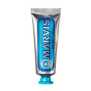 معجون تبييض الأسنان بنكهة النعناع المائي من مارفيس. تركيبة فاخرة تمنحك إحساسًا بالانتعاش النقي، تجمع بين النعناع الناعم والروائح البحرية اللطيفة. مناسب لمن يفضلون النكهات المعتدلة والمنعشة، ويبحثون عن معجون يقدم عناية متكاملة ونكهة راقية في آنٍ واحد.